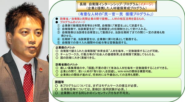 辰巳議員(左)が取り上げた自衛隊インターシップ・プログラム(辰巳事務所提供)