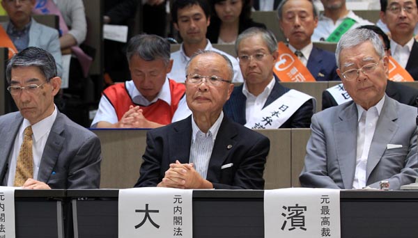 安保法案廃案運動の会見(中央が大森政輔・元内閣法制局長官)(C)日刊ゲンダイ