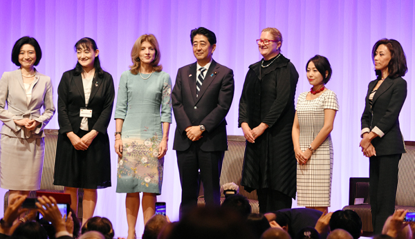 ウーマンビジネスサミットに出席した安倍首相(C)日刊ゲンダイ