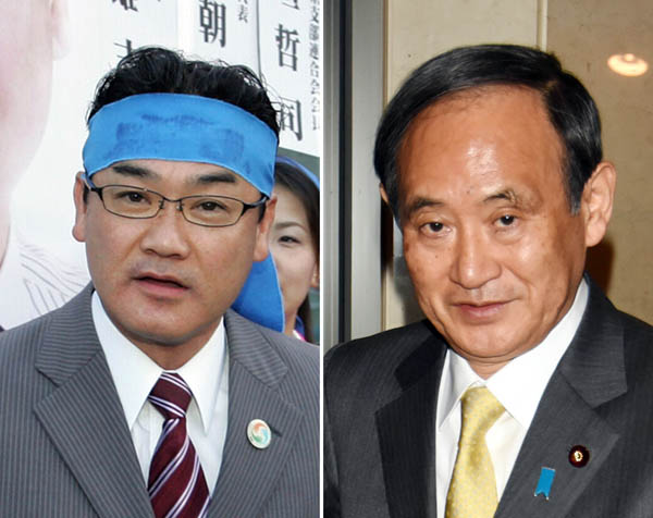 佐喜真淳宜野湾市長(左)と菅官房長官(C)日刊ゲンダイ
