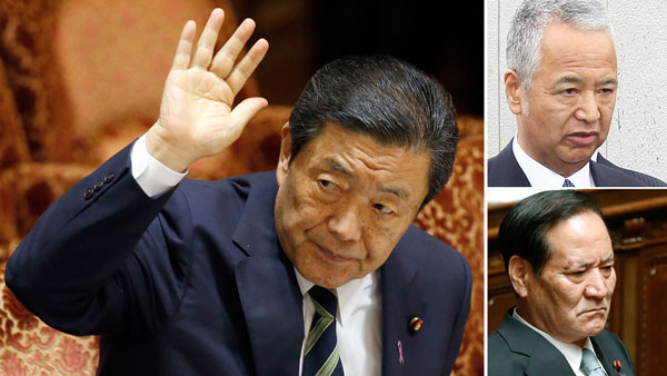安倍政権の閣僚は見返りをもらうのが当たり前?(左から時計回りに森山農相、甘利前大臣、西川元大臣)/(C)日刊ゲンダイ