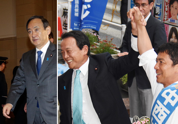 麻生氏は中西健治氏を全力支援していた(左は菅官房長官)/(C)日刊ゲンダイ