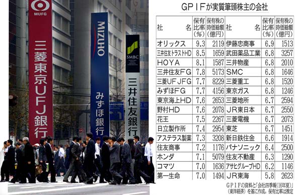 業界トップクラスがズラリ…GPIFが実質筆頭株主の30社