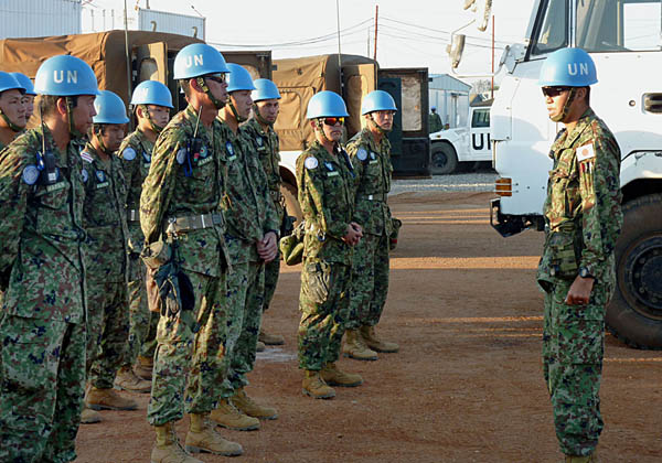 南スーダンの宿営地で訓練をする陸上自衛隊員(C)共同通信社