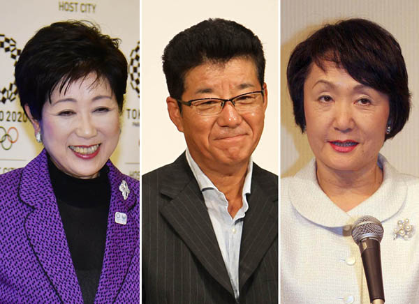 左から小池百合子東京都知事、松井一郎大阪府知事、林文子横浜市長(C)日刊ゲンダイ