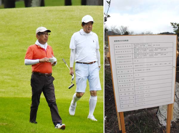 安倍首相とゴルフ仲間の加計孝太郎氏(現場には着工を示す標識も=右)/(C)日刊ゲンダイ