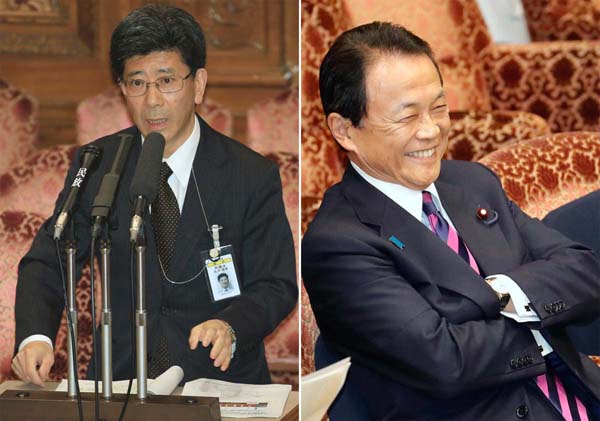 佐川理財局長(左)と麻生財務大臣(C)日刊ゲンダイ