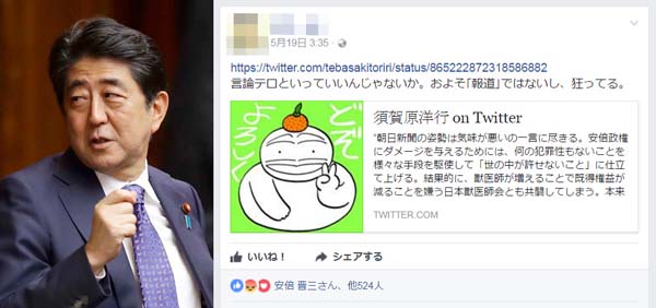 朝日は言論テロ FB投稿に首相が「いいね!」のおぞましさ