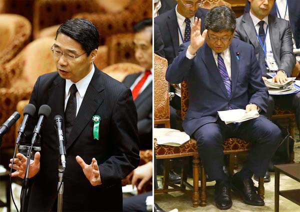 国会閉会中審査で質問に答える前川前次官(左)と発言する萩生田副長官/(C)日刊ゲンダイ