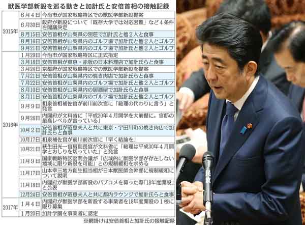 獣医学部新設をめぐる動きと加計氏と安倍首相の接触記録(C)日刊ゲンダイ