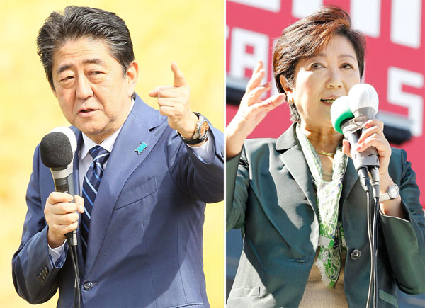 福島市(安倍首相)、JR池袋駅西口(小池代表)でそれぞれ第一声/(C)日刊ゲンダイ