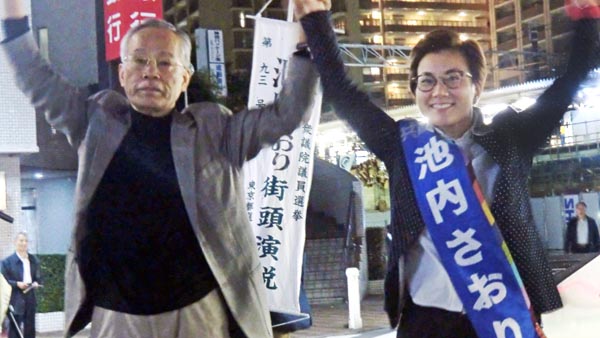佐高信氏も応援にかけつけた池内沙織氏の街頭演説(C)日刊ゲンダイ