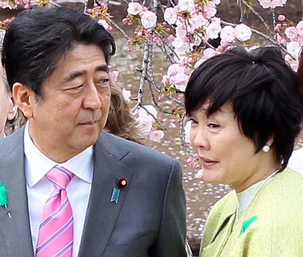 「桜を見る会」での安倍首相夫妻(C)日刊ゲンダイ
