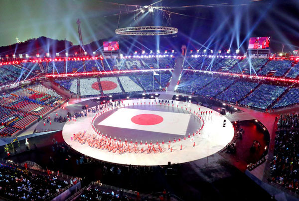 269人の日本選手団は97人が開会式に参加した(C)共同通信社