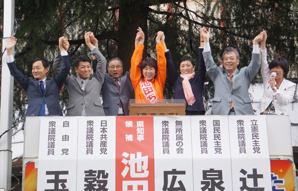 池田千賀子氏を応援する野党5党幹部(C)日刊ゲンダイ