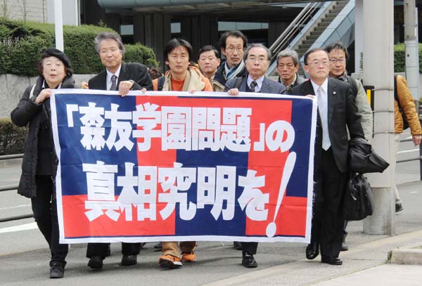 大阪地検に告発状を提出する市民ら(昨年4月)(C)共同通信社