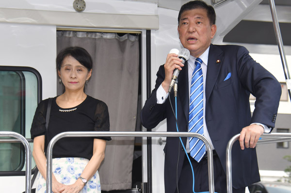 17日は佳子夫人を伴って街頭演説(C)日刊ゲンダイ