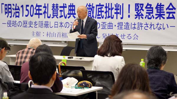 安倍首相の“明治礼賛”に抗議 歴史歪曲を許すなと怒りの声