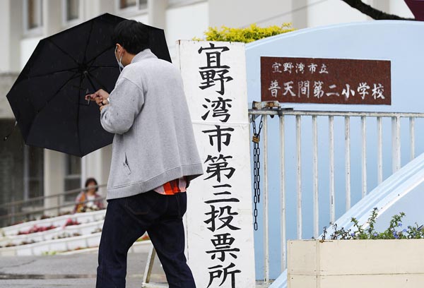 普天間飛行場の名護市辺野古移設を巡る県民投票に向かう投票資格者(C)共同通信社