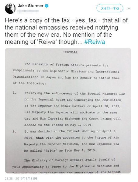 FAXには肝心の意味が載っていないいない(ツイッターから)