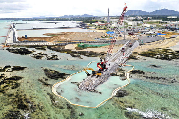 キャンプ・シュワブの沿岸部で行われる工事(C)共同通信社