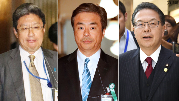 日本の産業を根こそぎ破壊(左から今井尚哉首相秘書官、柳瀬唯夫元首相秘書官、世耕経産相)/(C)日刊ゲンダイ