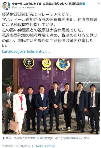 右から3人目が山本代表(中谷一馬衆院議員のツイッターから)