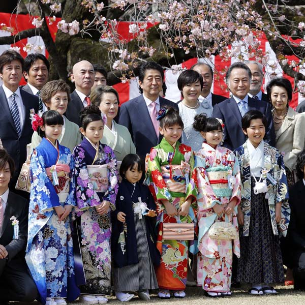 2016年の桜を見る会での安倍首相と昭恵夫人(中央)/(C)日刊ゲンダイ