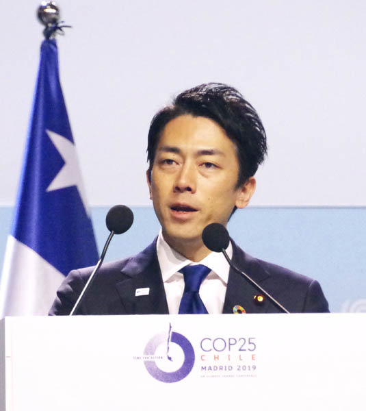 COP25の閣僚級会合で演説する小泉環境相(C)共同通信社