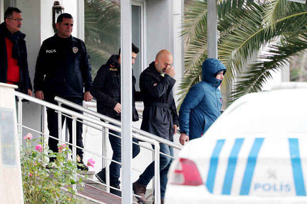 ゴーン被告の逃亡を手助けした男たちを連行するトルコ警察当局(C)ロイター/Demiroren News Agency (DHA)