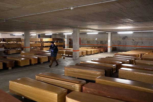 葬儀場の駐車場は棺桶がズラリ(C)ロイター