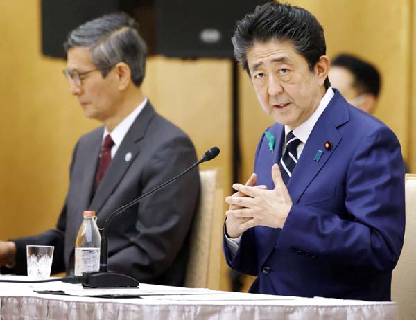尾身副座長(左)は安倍首相の会見にも同席(C)共同通信社