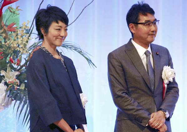 地元に配った金は総額2570万円、河井克行前法相と河井案里参院議員夫妻(C)共同通信社