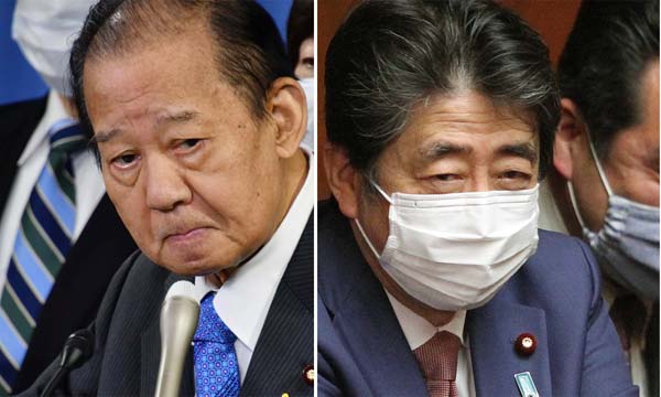 もともと河井案里元参院議員を担ぎ出したのも安倍前首相だけに…(左は自民党の二階幹事長)/(C)日刊ゲンダイ