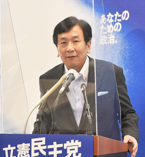 コロナ禍のなか、五輪開催断念を強く訴える立憲民主の枝野幸男代表(C)共同通信社
