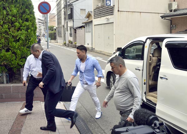 神戸山口組の幹部会合のため、山健組関連施設に入る組幹部ら(2016年)/(C)共同通信社