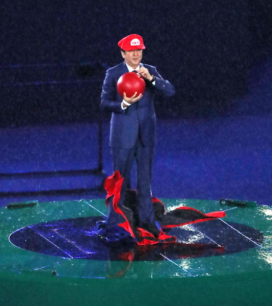 出席すべき責任があったはず(2016年リオ五輪での安倍”マリオ”勇姿)/(C)日刊ゲンダイ