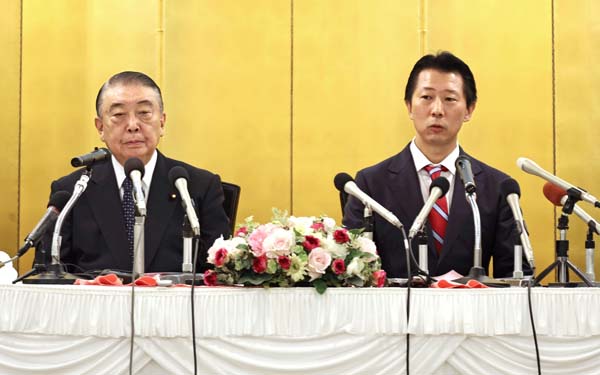 今年6月大島理森衆院議長(左)の後継として立候補すると発表した神田潤一氏(C)共同通信社
