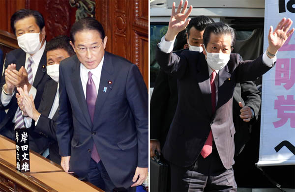 10万円給付でメンツの張り合い、何やってるのか(岸田首相と公明党の山口代表=右)/(C)日刊ゲンダイ