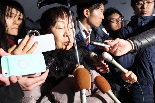 取材陣に取り囲まれる筧千佐子死刑囚(2014年撮影)/(C)日刊ゲンダイ