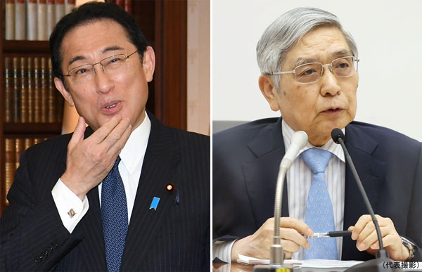 円安放置で外遊三昧(岸田首相と黒田日銀総裁=右)/(C)日刊ゲンダイ