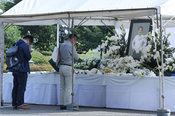 安倍晋三元首相の通夜で献花する一般の弔問客(C)日刊ゲンダイ