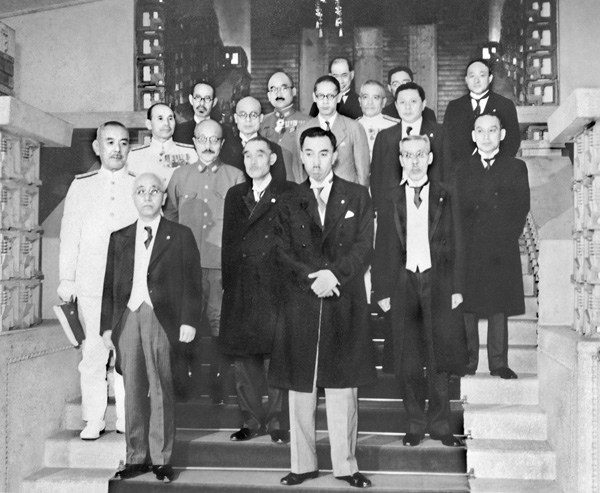親任式後の初閣議を終え、記念撮影する第3次近衛内閣の閣僚(1941〈昭和16〉年7月18日、首相官邸)/(C)共同通信社