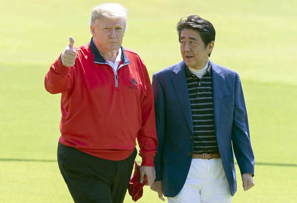 ゴルフで遊んで親密さを売りにしていたのに…(安倍元首相とトランプ前米大統領)/(C)JMPA