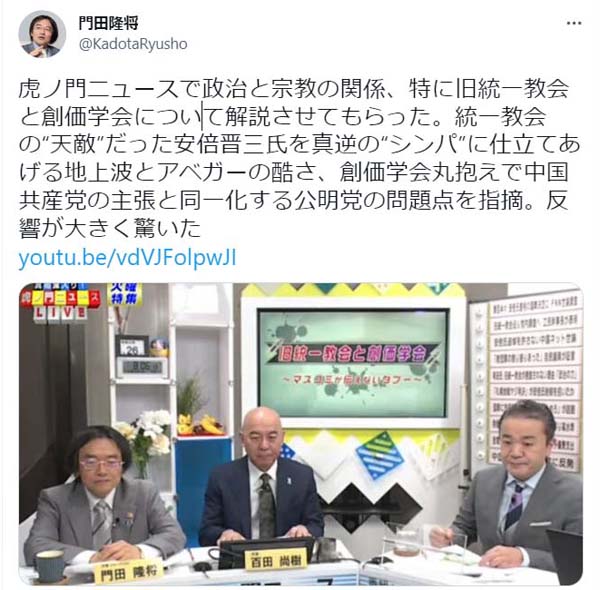 (門田隆将氏のツイッターから)