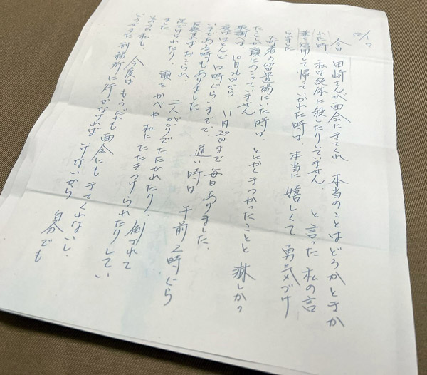 Mさんから田崎さんに宛てた手紙(撮影)片岡健