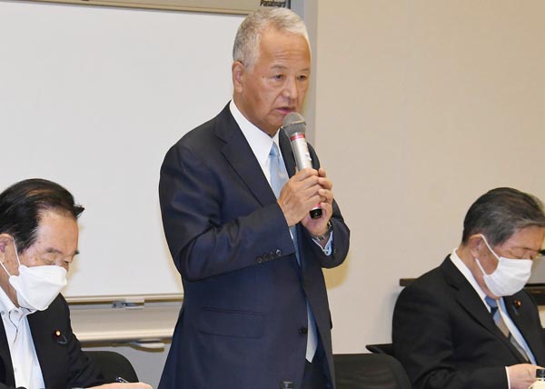 議連の設立総会であいさつする甘利明・前自民党幹事長(C)日刊ゲンダイ