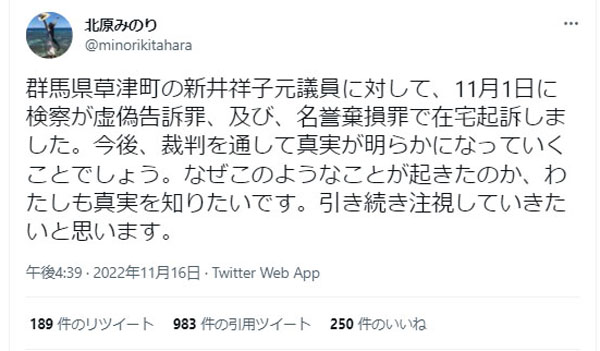 北原みのり氏のツイッター(@minorikitahara)から