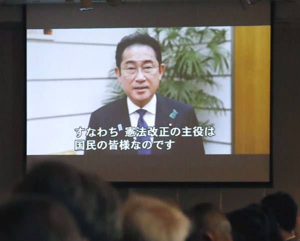 改憲派集会にビデオメッセージを寄せた岸田首相(C)共同通信社
