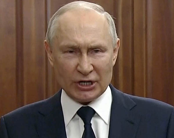 核兵器の使用も辞さない(ロシアのプーチン大統領)/(大統領府提供・AP=共同))